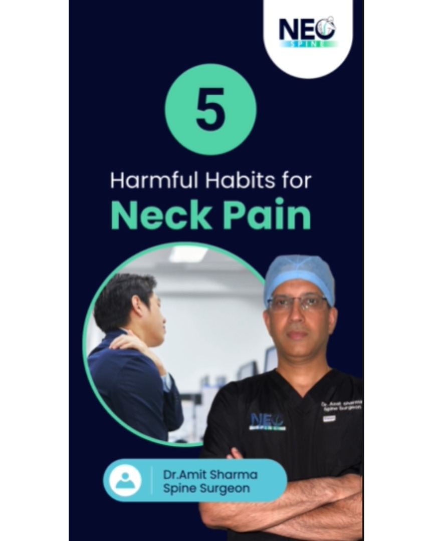 Neck pain isn’t usually from one big injury it’s the result of harmful daily habits. Here are 5 habits silently hurting your neck: Looking down at your phone for hours (text neck). Poor posture while sitting or working. Sleeping without proper neck support. Carrying a heavy bag on one shoulder. Ignoring stress and stiffness. Correcting these can reduce pain and protect your neck health. For severe cases, options like minimally invasive surgery are available. Learn about the best surgeon for minimally invasive surgery, recovery timelines, and the cost of minimally invasive neck surgery. Looking for expert neck treatment in Mumbai? Consult a neck surgeon specialist in Parel or explore advanced care like endoscopic neck surgery in Girgaon. At Neo Spine, led by the best spine surgeon in Mumbai, our spine surgery center in Girgaon and the best spine hospital in Dadar provide world-class care.